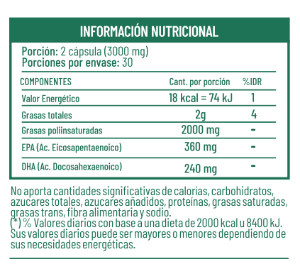 Además, su materia prima cumple con estándares internacionales de pureza IFOS (International Fish Oil Standards) y proviene de fuentes Non-GMO, lo que garantiza un suplemento confiable, potente y de alta biodisponibilidad.